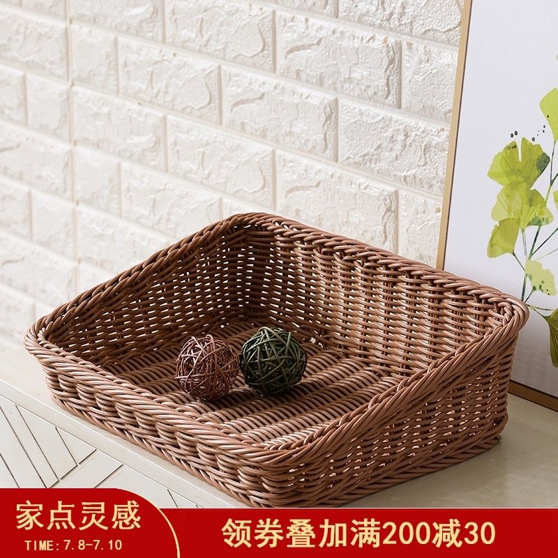 长方形仿藤编收纳筐 零食水果篮斜口面包篮子 超市展示柜篮子梯形热门设计联盟服务商